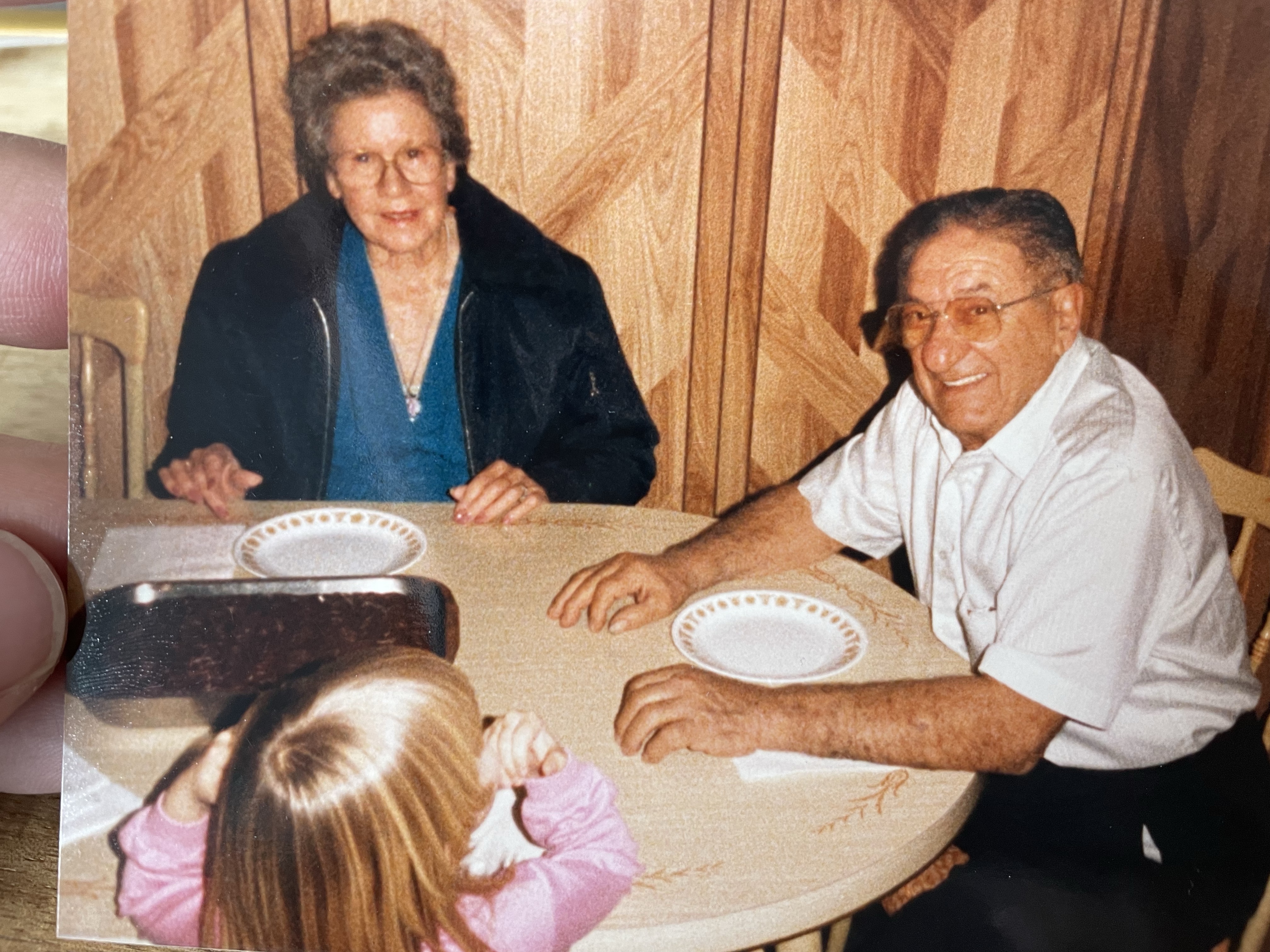 Waiting to eat my birthday cake with my grandparents.